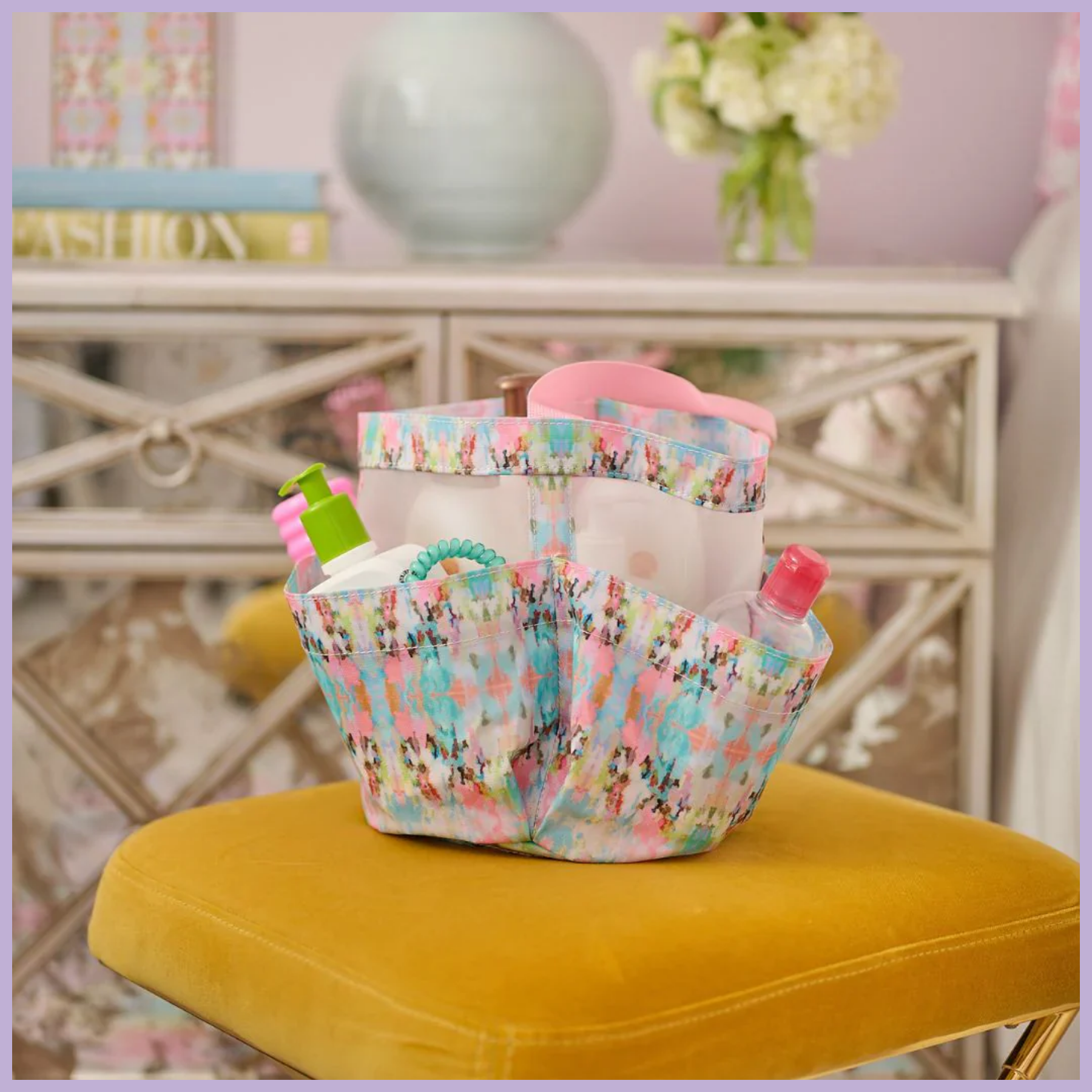 Add a splash of color to your daily routine with the Brooks Avenue Shower Caddy—perfect for dorms, apartments, and stylish bathrooms. Featuring a vibrant Laura Park pattern, this chic and functional caddy offers ample space to keep shampoo, soap, and all your essentials neatly organized.