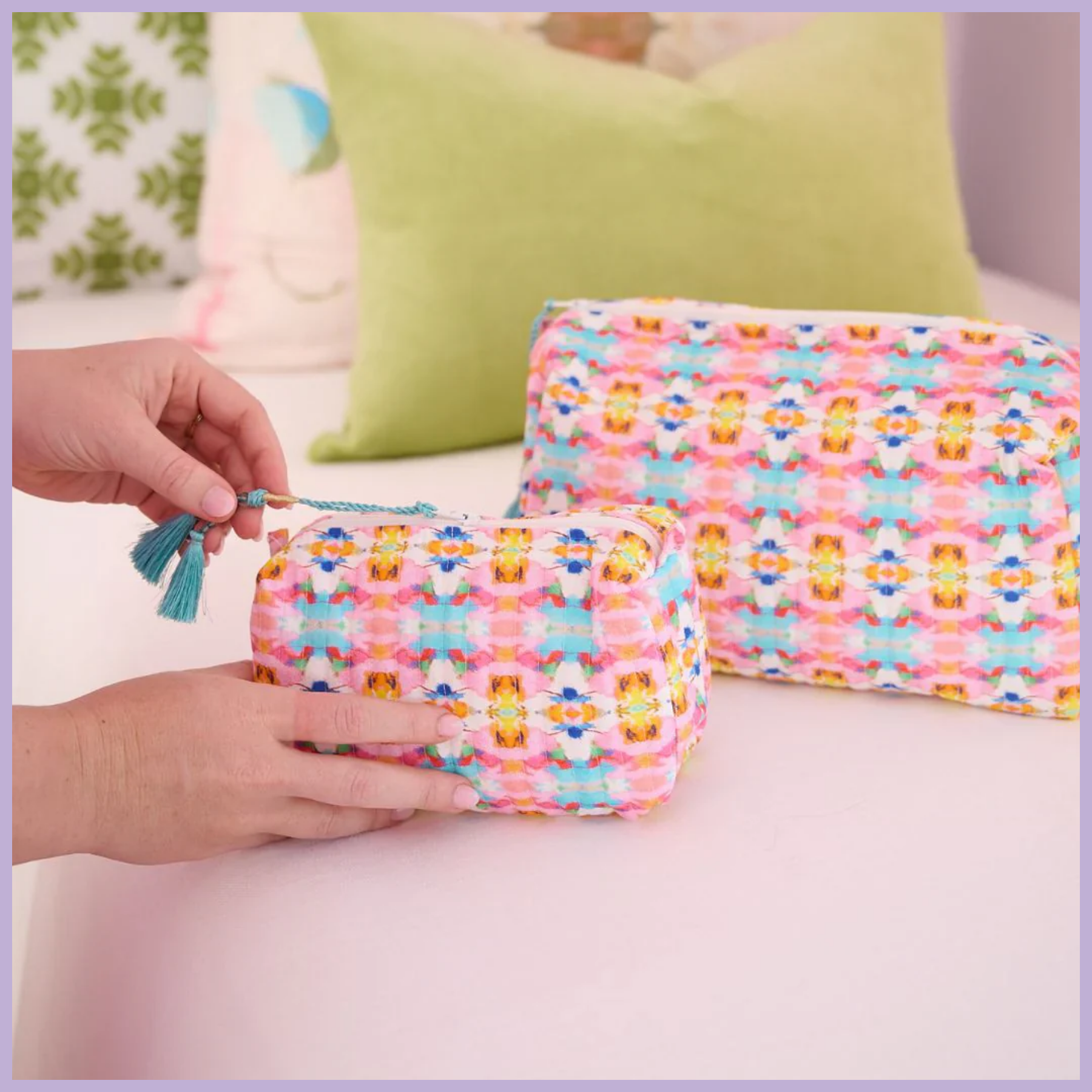 A fresh take on a travel essential! These cosmetic bags are your new go-to beauty bag. Lined with a plastic interior to make minor spills no big deal.