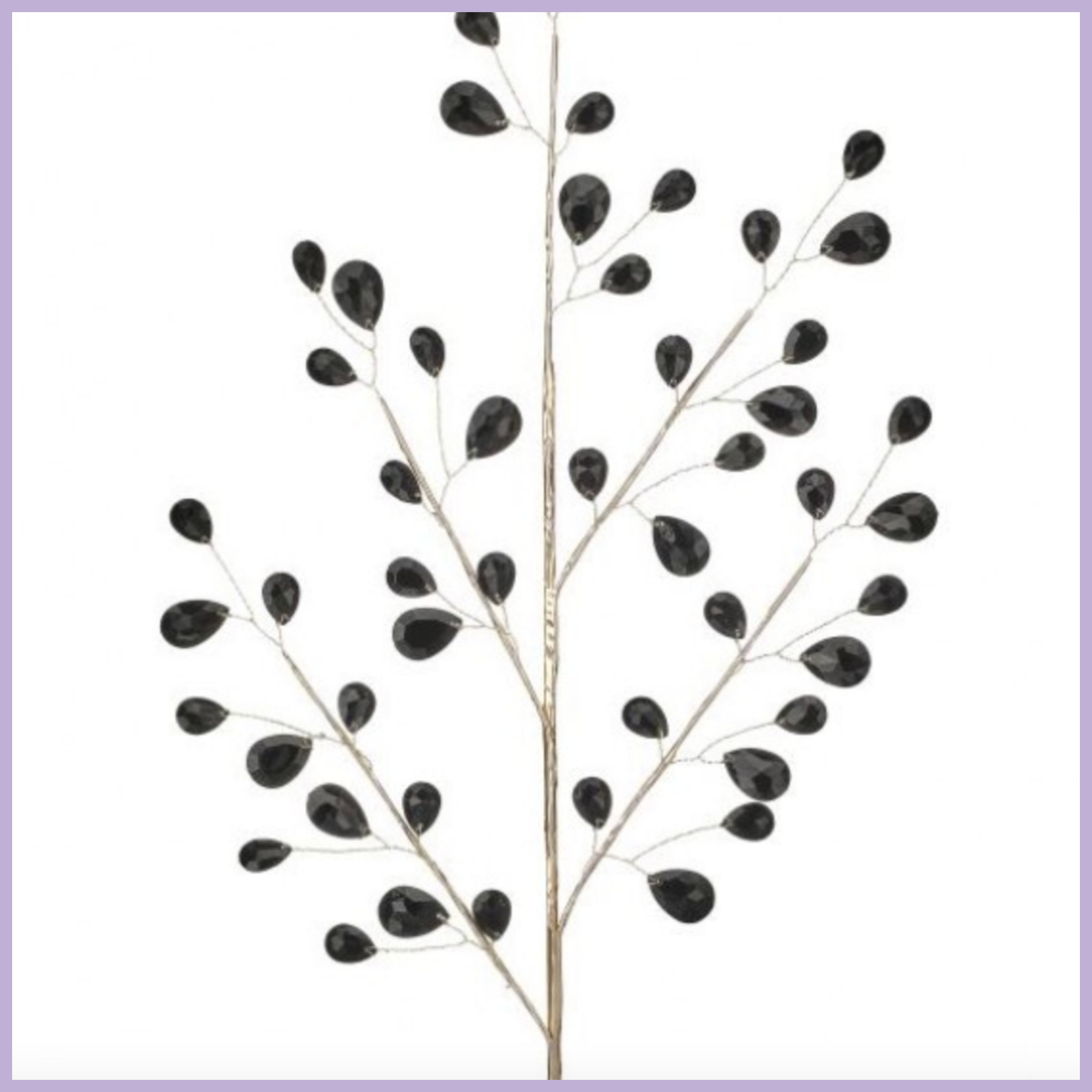 Stylish decorative spray featuring metallic black stems adorned with shimmering jewels. Perfect for adding a modern, elegant touch to floral arrangements or holiday décor.