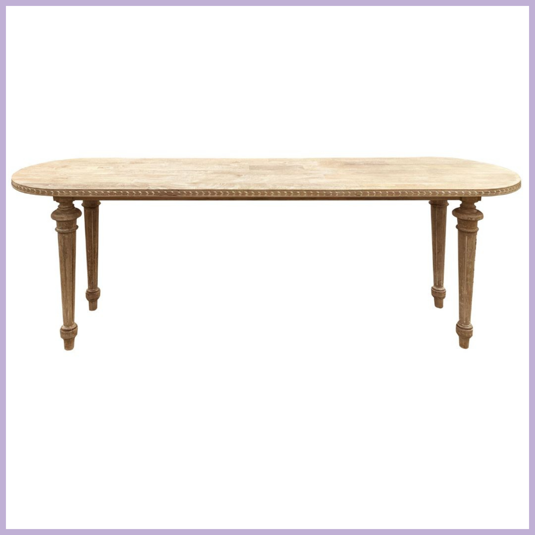 The 78" Abbey Console Table is a beautiful and functional piece that adds a touch of elegance to any space. Its oval top, adorned with intricate inlaid details, creates a visually stunning focal point. The unique turned legs provide a traditional-inspired look, while the new white wash finish gives it a contemporary flair. Whether used as a console table, entryway table, or buffet, the Abbey Console Table is a versatile and stylish piece that will enhance any room.