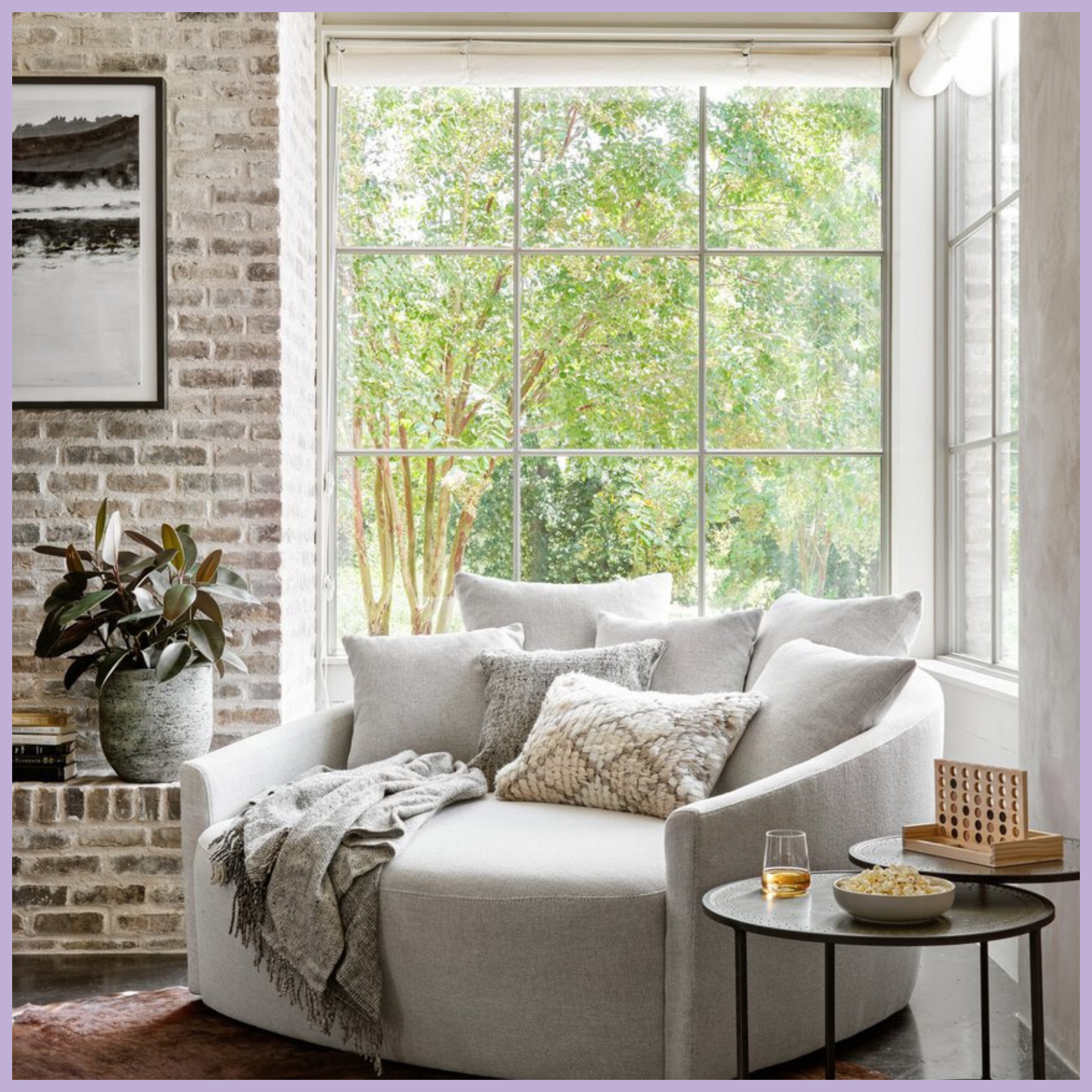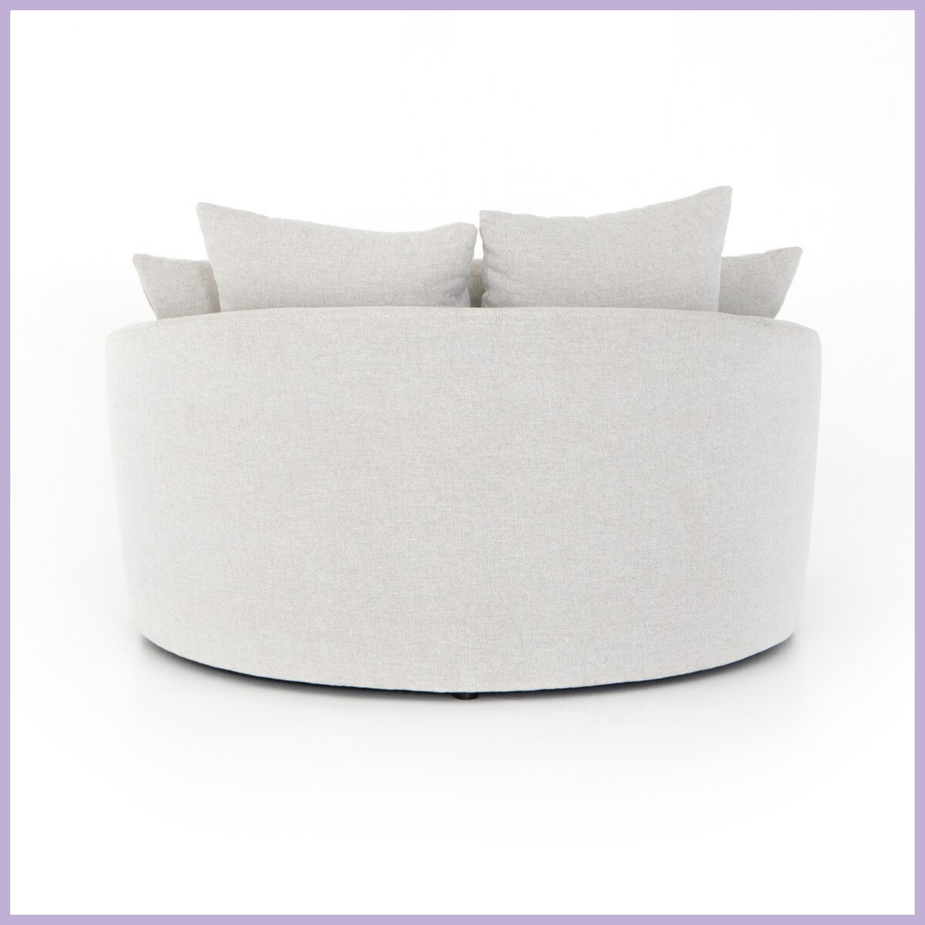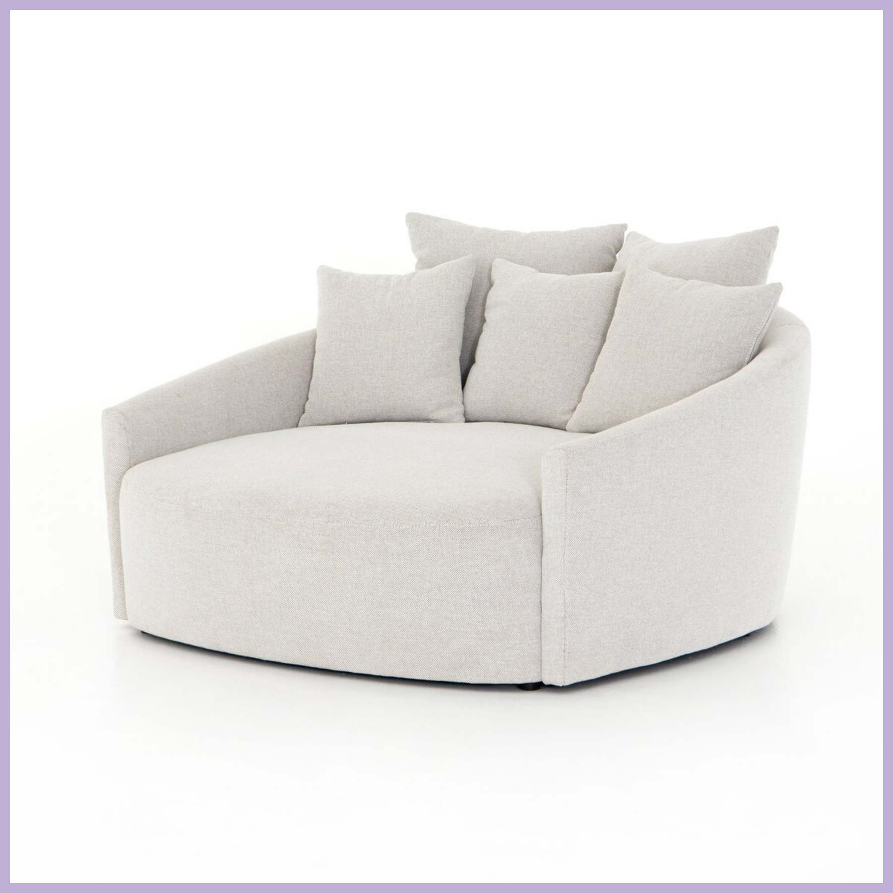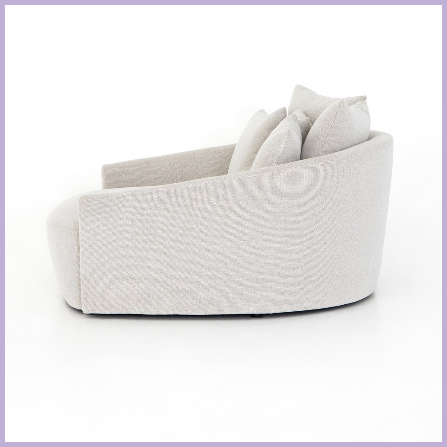 Roomy style. Off-white high-performance fabric covers a dramatic U shape for a spacious, sink-in sit. Throw pillows present an added touch of comfort to this sensibly styled media lounger, perfect for movie nights. Performance fabrics are specially created to withstand spills, stains, high traffic and wear, ensuring long-term comfort and unmatched durability.