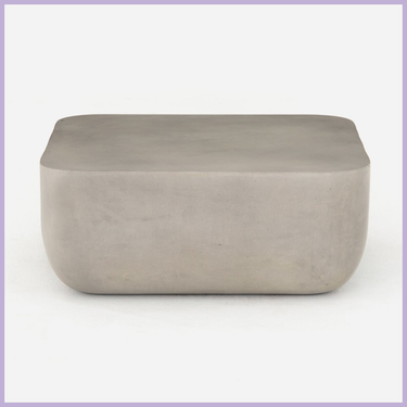 Grey-finished concrete and soft square shaping make for an effortlessly cool coffee table, indoors or out. Cover or store inside during inclement weather and when not in use.