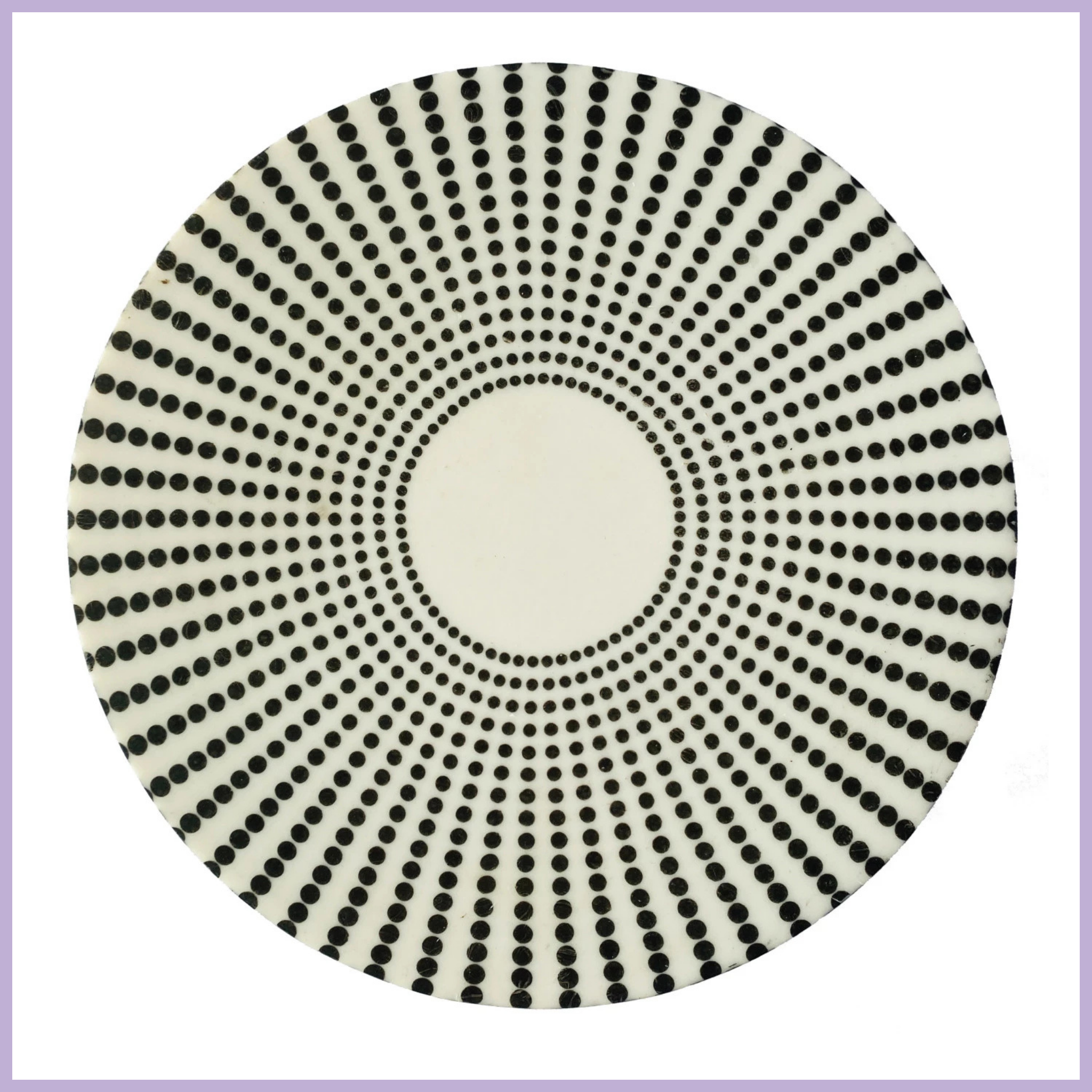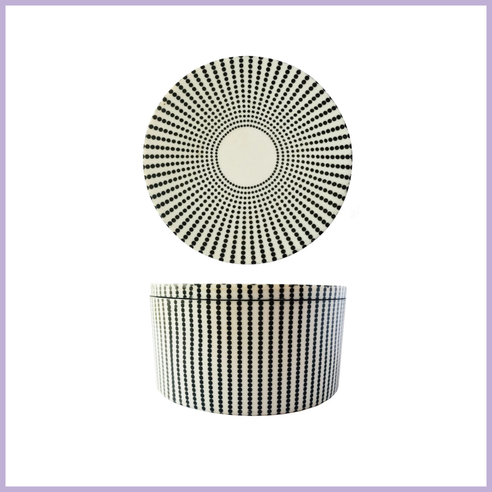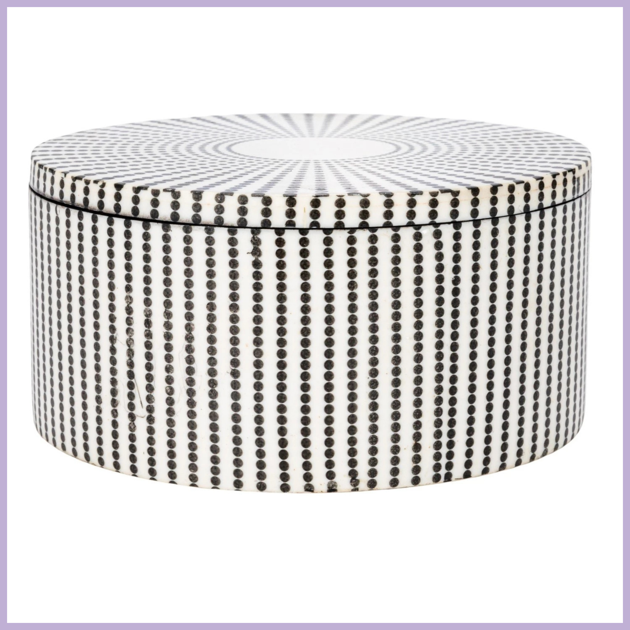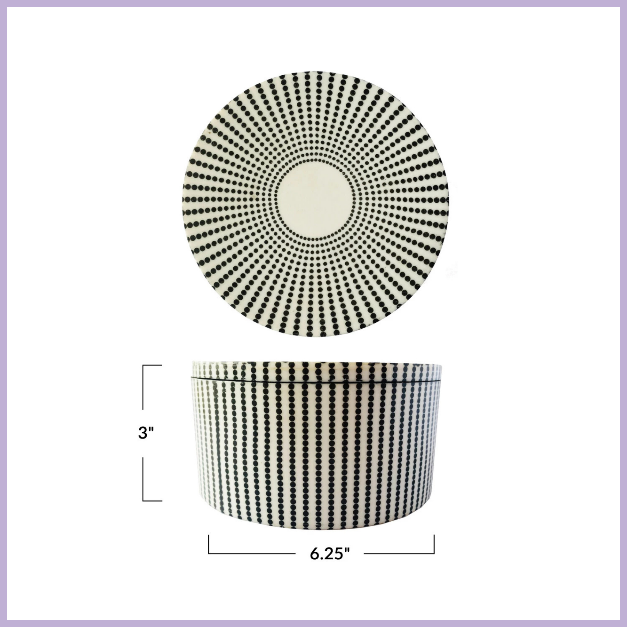 6-1/4" Round x 3"H Resin & MDF Box w/ Dots, Black & Cream Color