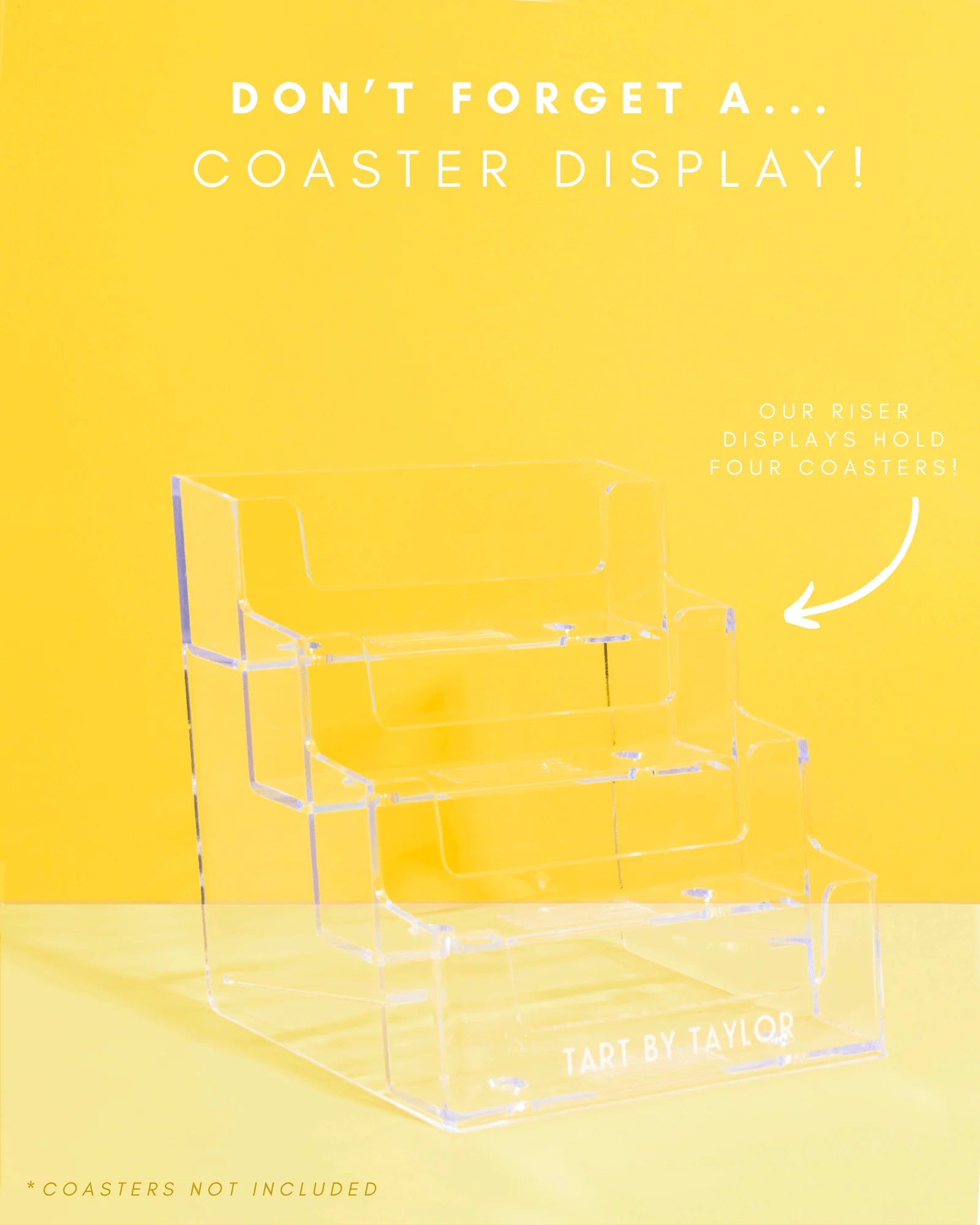 Our coasters are truly pieces of art, so they should be displayed like it! We believe in that so much, we named our company after it... Tart = Taylor Art, get it?! Use this chic acrylic display to show off your coasters and give them the TLC they deserve!
