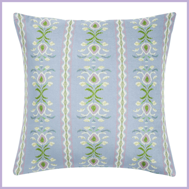 Soft, structured, and quietly playful. Delicate floral motifs and vertical striping in calming blue, green, and lavender tones bring a balanced, tailored feel to sofas, beds, and accent chairs. An easy layering piece that adds pattern without overwhelming the space.