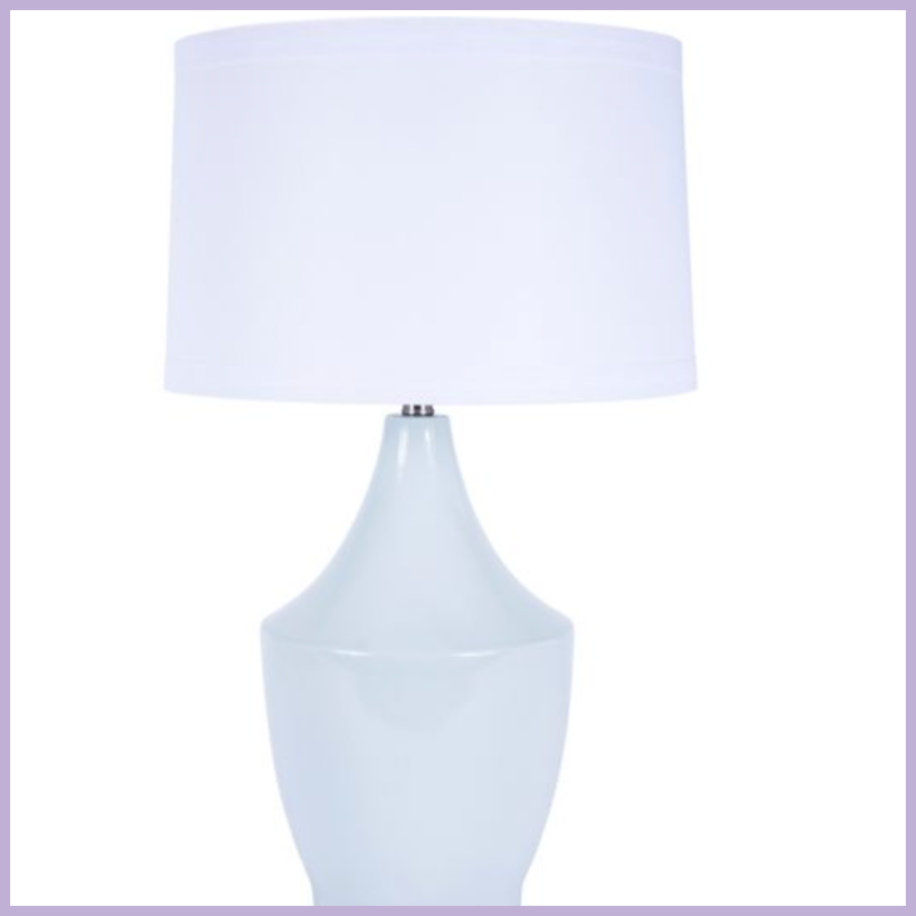 SHELBY BABY BLUE CERAMIC TABLE LAMP WITH WHITE LINEN SHADE